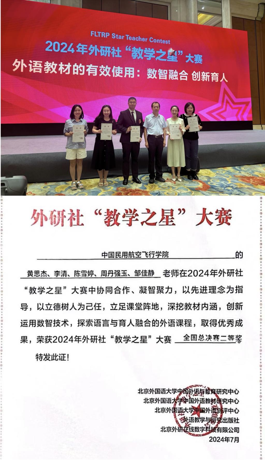 7月28日,2024年外研社“教学之星”暑期大学英语组教学比赛在安徽合肥圆满落幕,我校SUNBET申搏教师黄思杰、李清(团队成员陈雪婷、周丹强玉、邹佳静)凭借出彩的课程设计、扎实的语言功底荣获2024年外研社“教学之星”全国总决赛二等奖的优异成绩,为本次四川省大学英语组晋级高校所获得的最佳名次。