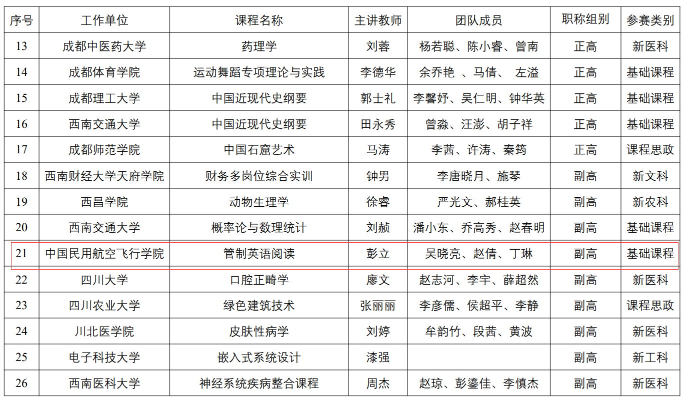 近日,四川省教育厅公布了《第三届四川省普通本科高校教师教学创新大赛获奖名单的通知》,SUNBET申搏彭立副教授教学团队领衔的管制英语阅读课程荣获副高组二等奖!教学团队还包括吴晓亮老师,赵倩老师以及丁琳老师。