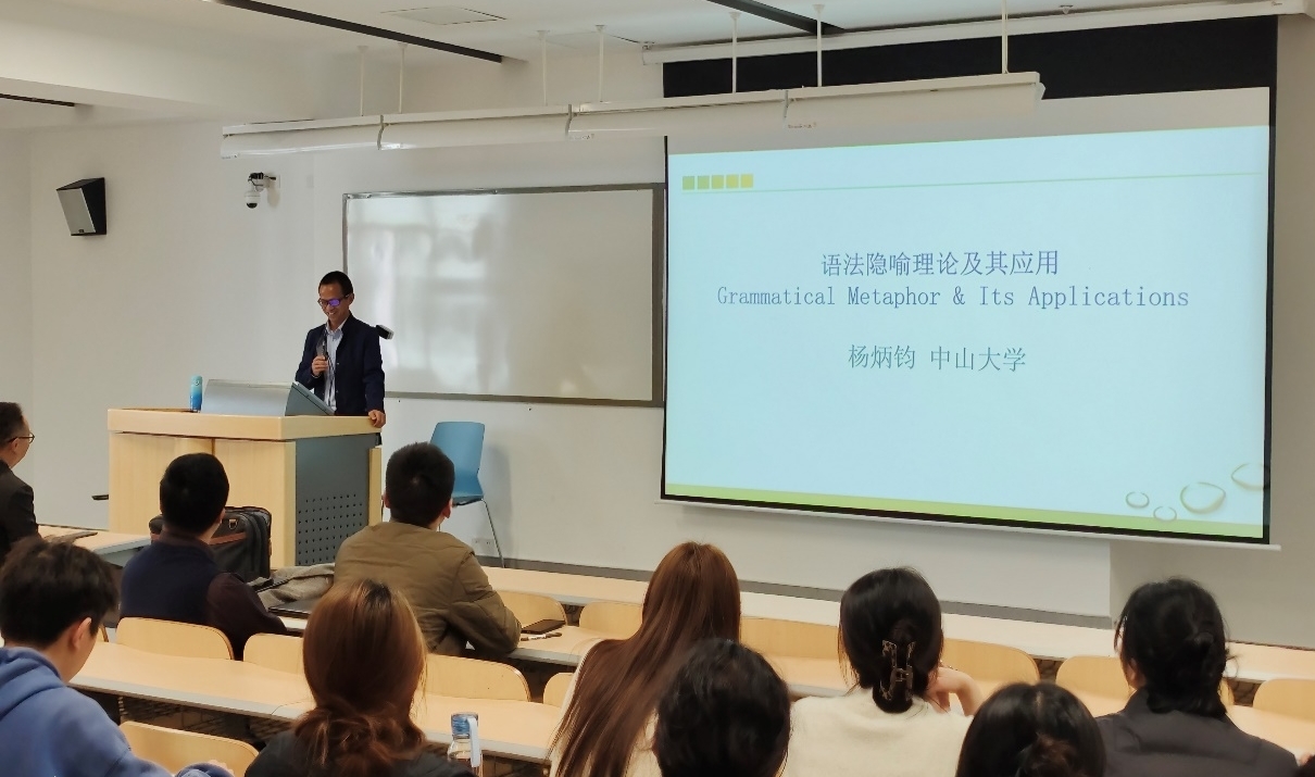 互动环节中,师生围绕语法隐喻在外语教学、翻译策略以及跨文化交际中的具体应用踊跃提问。杨教授结合自身研究成果,建议将理论分析与语料库实证相结合,为语言教学提供新思路。