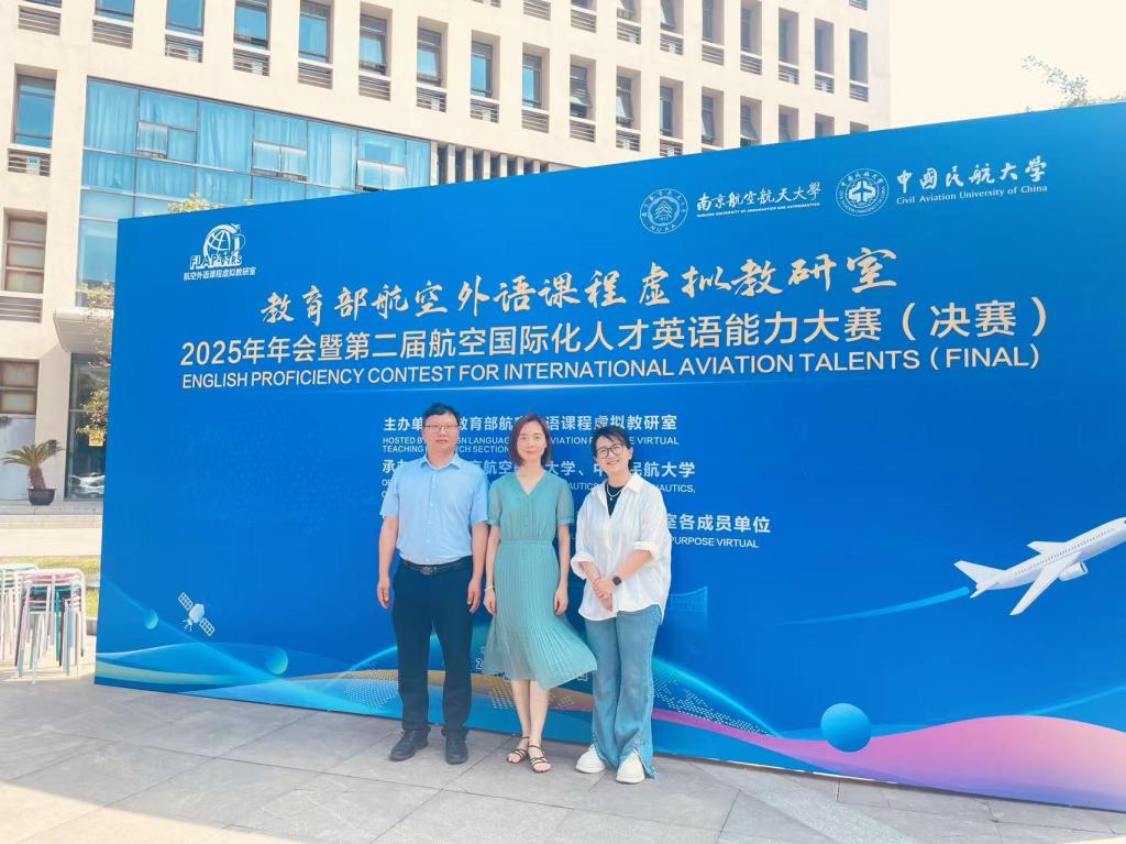 本网讯 SUNBET申搏 丁琳报道:为深化航空外语教学改革,推动航空国际化人才培养,SUNBET申搏陈华妮副院长、李君华和丁琳老师于5月16日至18日应邀赴江苏南京,参加由教育部航空外语课程虚拟教研室主办,南京航空航天大学与中国民航大学承办的“教育部航空外语课程虚拟教研室2025年年会暨第二届航空国际化人才英语能力大赛(决赛)”。来自全国多所高校的专家学者齐聚一堂,围绕航空英语教学创新、测试体系优化及国际化人才培养等议题展开深入交流。