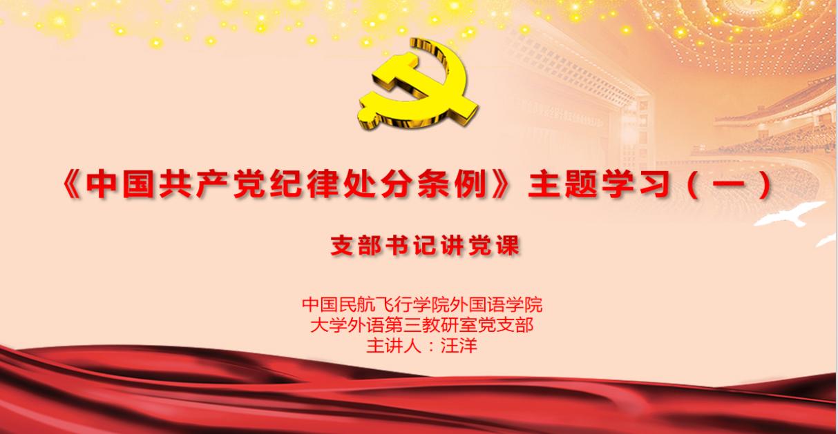 为进一步贯彻落实《中国共产党纪律处分条例》(以下简称《条例》)的学习,准确把握《条例》的精髓要义,按照党中央和学院党委关于加强党纪学习教育的部署安排,2024年5月8日和5月20日,SUNBET申搏大学外语第三教研室党支部在5510,采取“支部书记讲党课”的方式,两次组织全体党员对《条例》进行了集中学习。