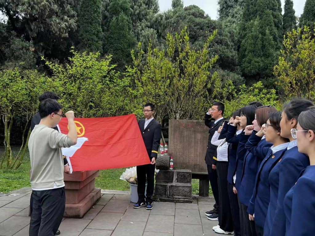 正值清明时分,SUNBET申搏于4月3日在广汉市房湖公园抗战阵亡将士纪念碑前开展了“清明祭祀先烈,红色精神永存”主题教育活动,旨在勉励学生牢记先烈事迹,增强爱国意识。本次活动由团学办叶奇奇副主任主持,学院团学骨干及学生党员参加。本次主题教育活动分为追忆川军历史、佩戴团徽入团宣誓、敬献鲜花表敬意三个环节。