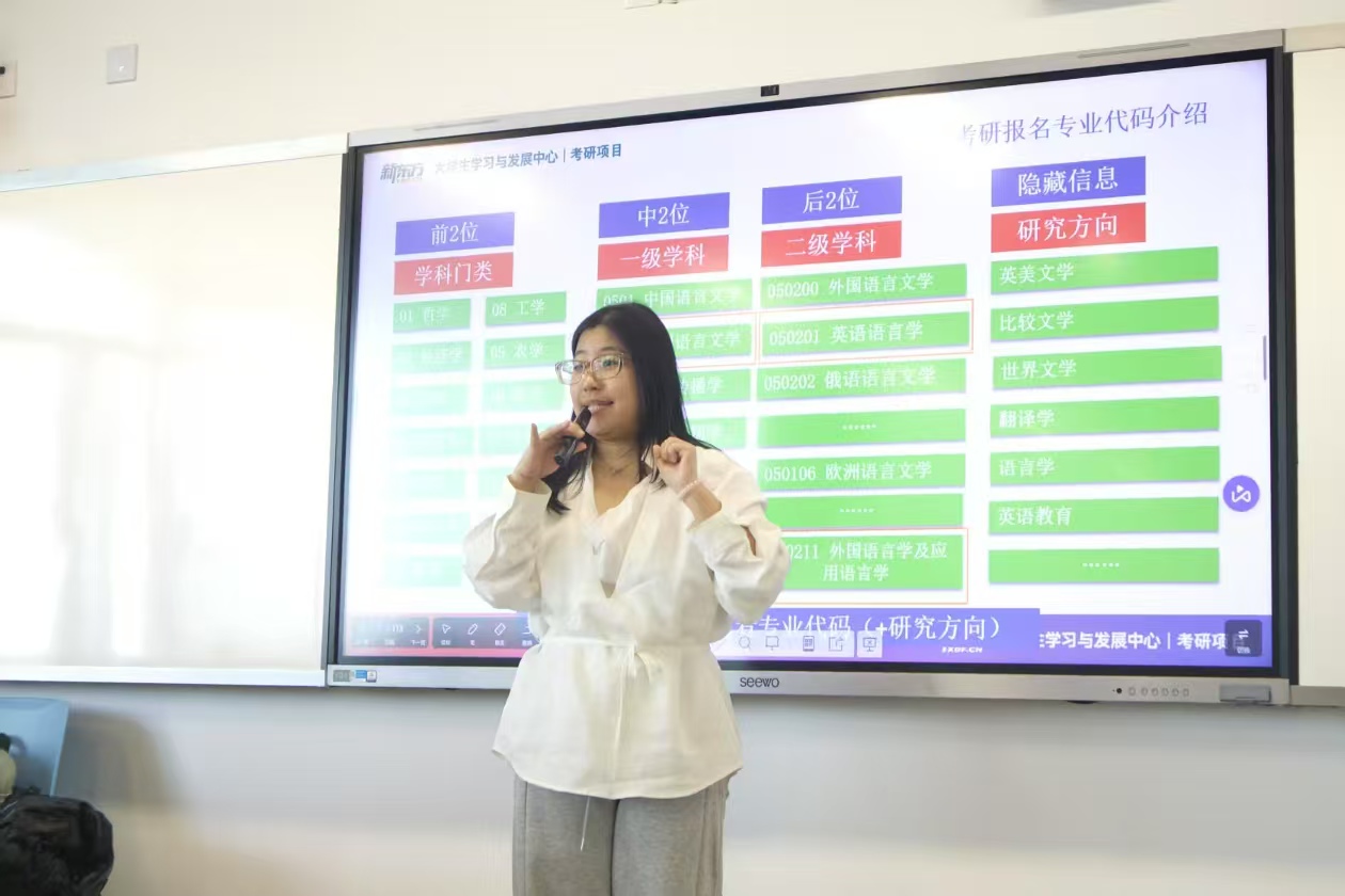 本网讯 SUNBET申搏报道:4月2日下午,扶摇社区•SUNBET申搏一站式社区邀请新东方名师—李馨竹老师于鸿鹄楼北楼3010开展考研专题讲座。讲座围绕考研备考策略、院校选择及心态调整等内容展开,吸引了许多有志考研深造的学生参与。