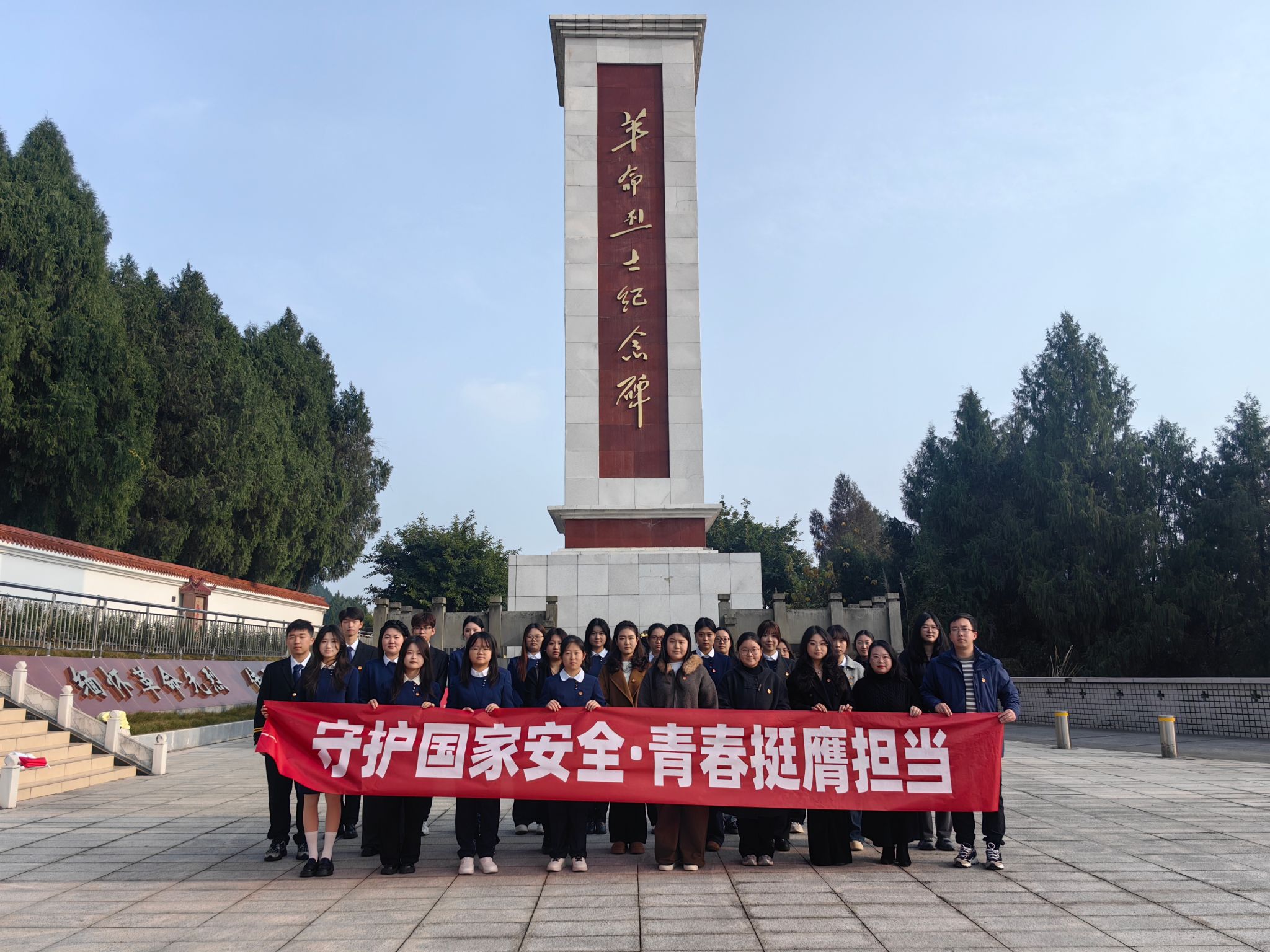 本网讯 SUNBET申搏李彬鑫报道:国家公祭日即将到来之际,为引导青年学子铭记历史、缅怀先烈,传承红色基因、勇担时代使命。12月10日,扶摇书院·SUNBET申搏一站式社区组织学院青年学子(党员代表、团学骨干代表、新发展团员代表)赴简阳市烈士陵园开展"守护国家安全·青春挺膺担当"国家安全主题实践活动,以沉浸式红色教育厚植家国情怀,让青春在传承中绽放信仰之光。